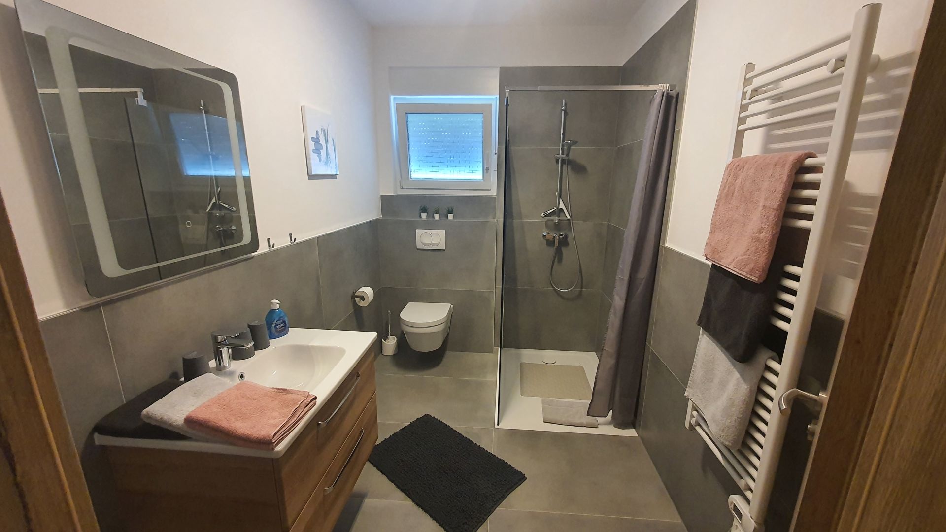 2 Badezimmer mit WC und Dusche mit ebenerdigem Einstieg